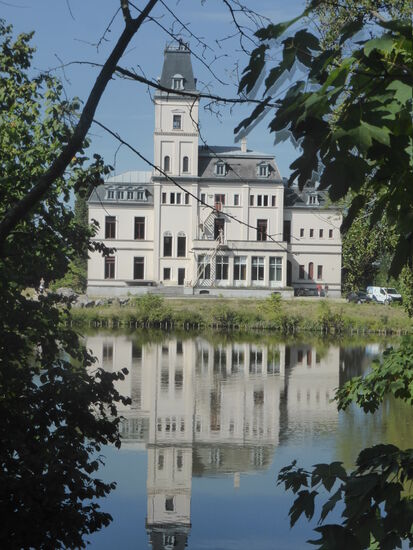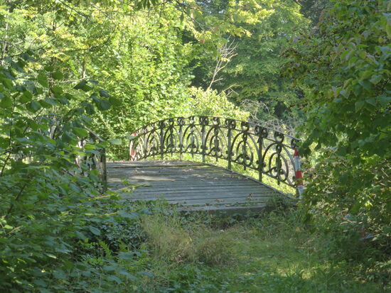 Der ehemals wohl ebenfalls als englischer Landschaftgarten gestaltete Park ist leider verwildert -