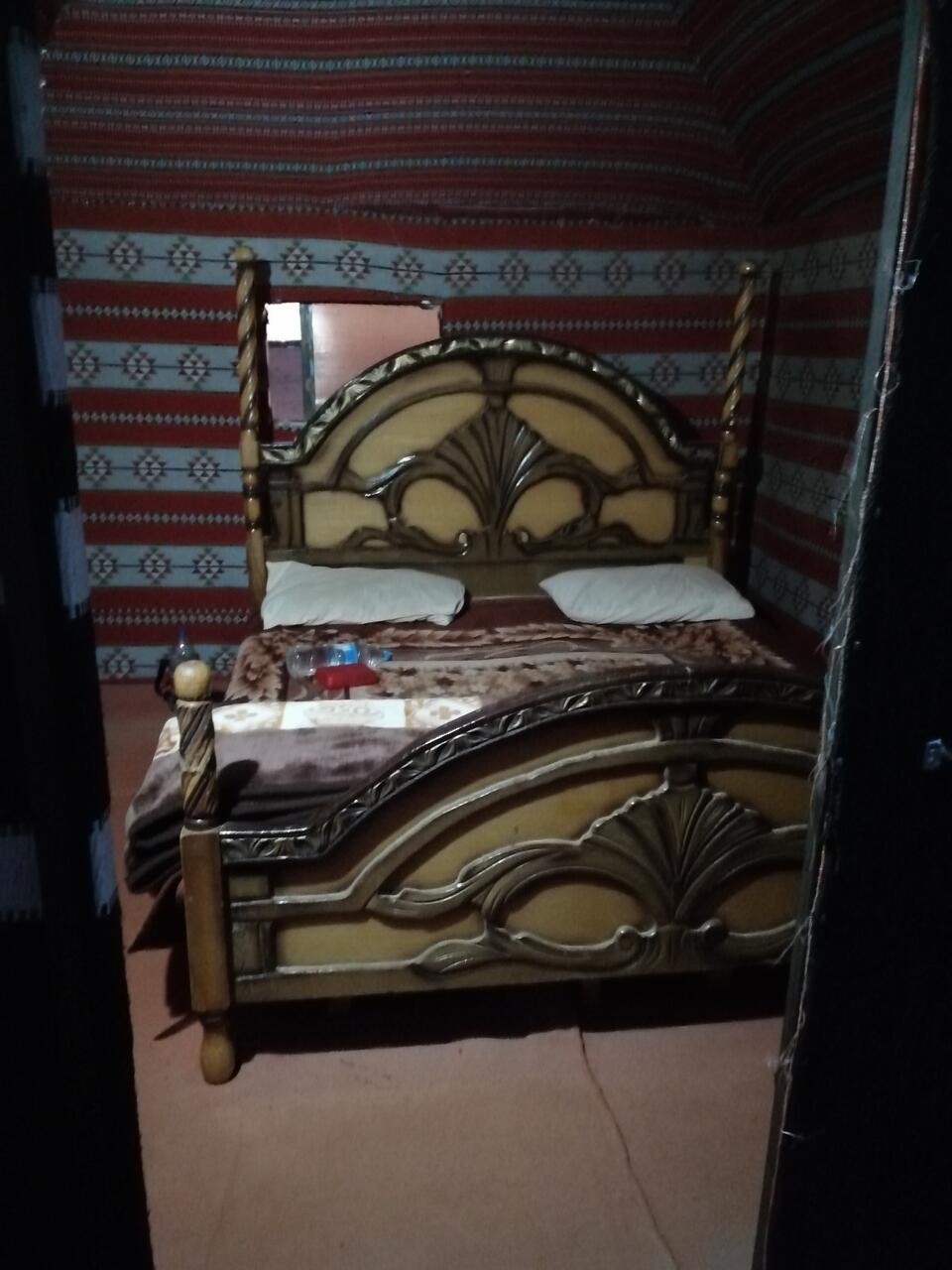 Obwohl hier reichlich „Pakete“ incl Jeep-Safari und Essen für diesen Ausflug angeboten werden, habe ich uns eine Unterkunft im „Desert Moon Camp“ für 14JD incl Frühstück gebucht.