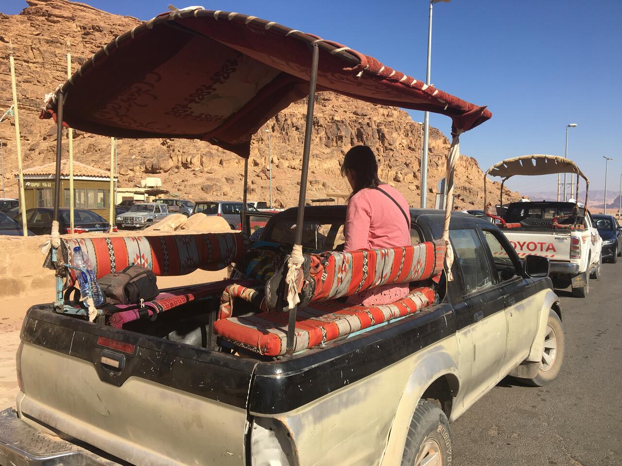 Gestern Abend habe ich an der Rezeption nach dem Public bus nach „Wadi Rum“ gefragt. Der junge Mann sagt, dass er uns gegen 6.30 Uhr vom Hotel abholt-