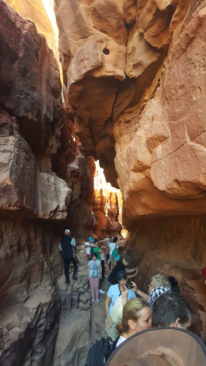 Der „Siq Um Tawaqi“ Canyon—hier werden wir abgesetzt, sollen durch die Schlucht durch laufen und am anderen Ende sammelt uns der Fahrer wieder ein
