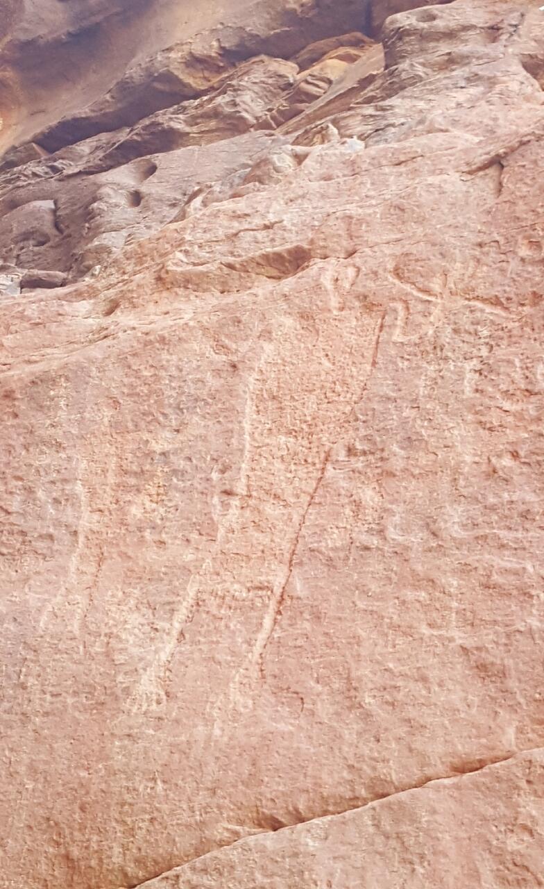 Dann kommen wir zu einer Schlucht, in deren Inneren man noch einige Wandmalereien der Nabatäer sehen kann