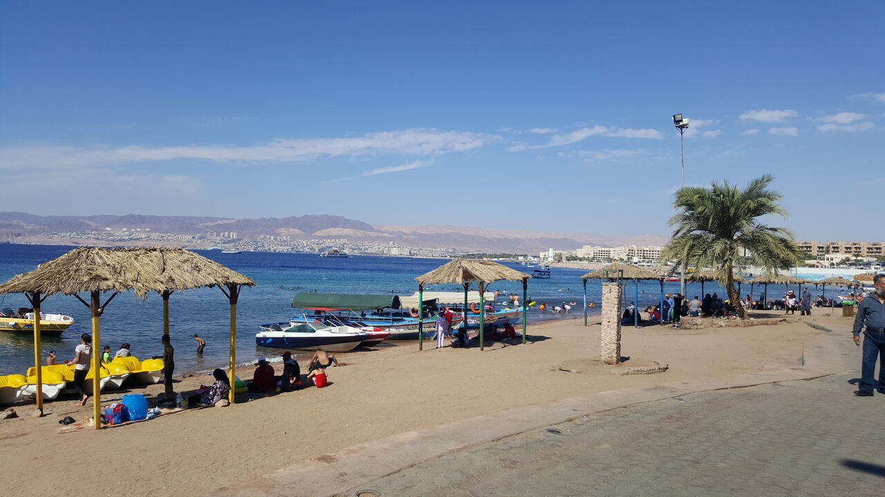 Der Strand liegt quasi vor der Haustür—ist aber nicht sehr schön und von den Jordaniern gut besucht. Es ist ja auch Wochenende