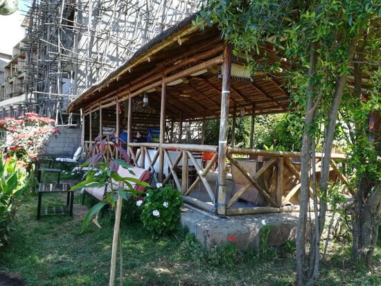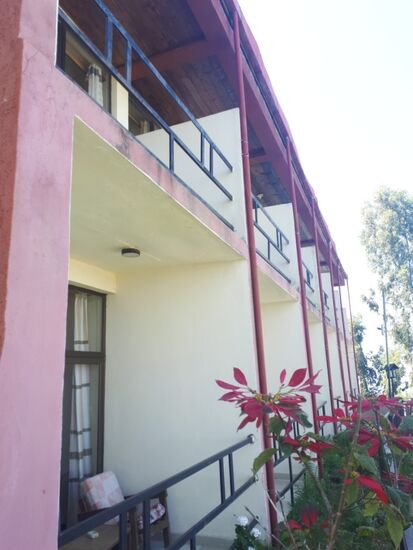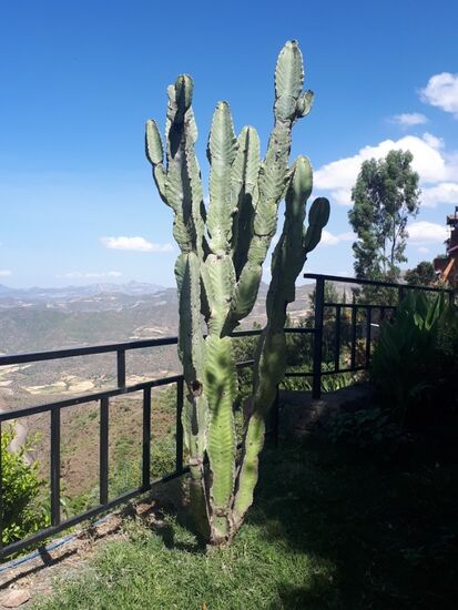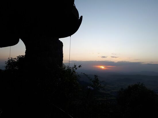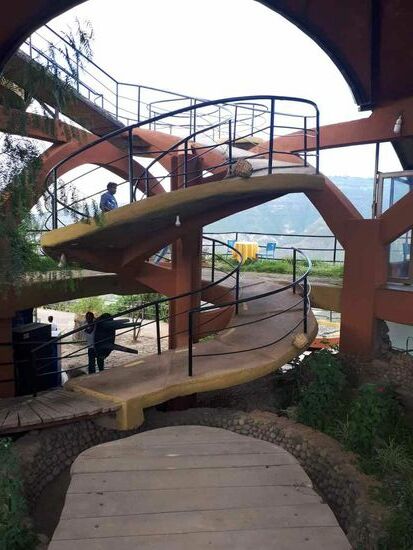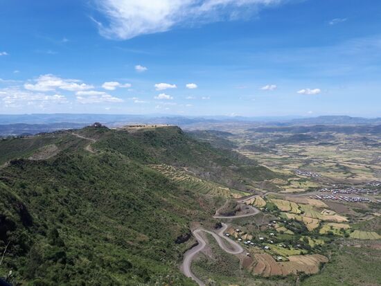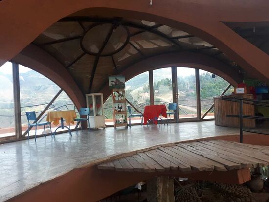 Es ist optisch ein echt außergewöhnlich und schon futuristisch wirkended Restaurant auf der Anhöhe und hat einem tillen Blick ins Tal und auf die umliehenden Berge von Lalibela.