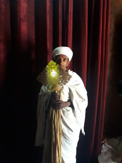 Die Priester zeigen immer wieder ihre verschiedenen Kreuze her. Jede Kirche in Äthiopien hat sein eigenes Kreuz.