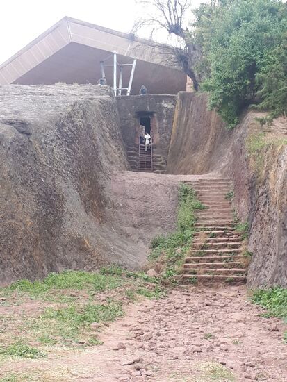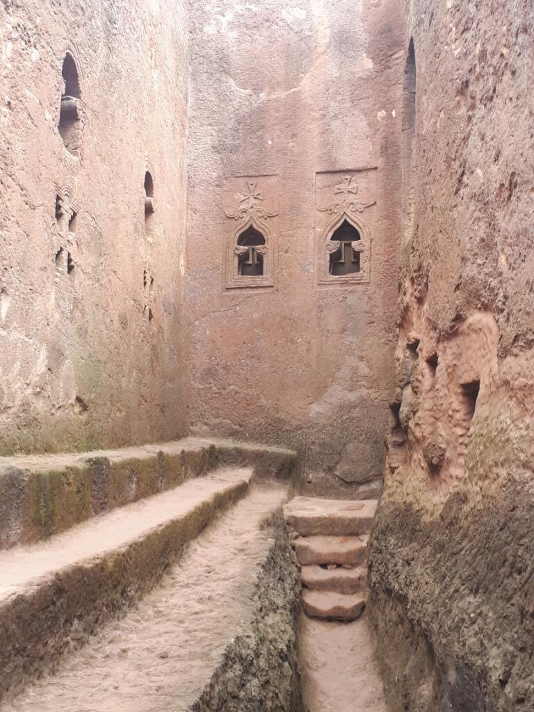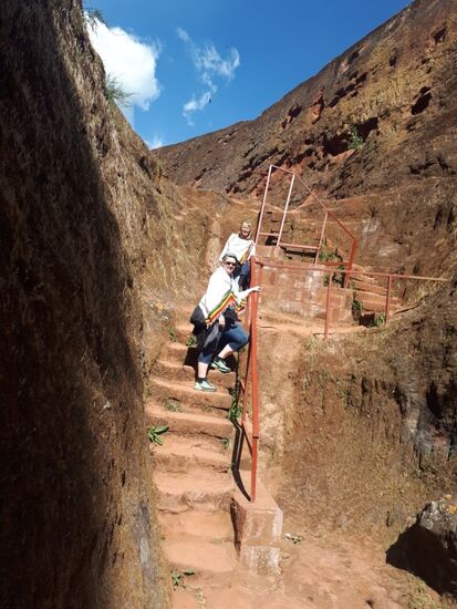 An 2 Tagen gehen Ines und ich mit Happy zu den Felsenkirchen. Durch Tunnel und Gänge, sowie über Treppen geht es von einer Felsenkirche zur Anderen.