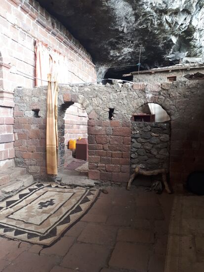 Von Hier aus geht es es über Stufen bergab, man kann das Kloster schon in der Entfernung im Felsen drin erkennen!