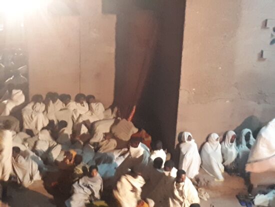 Die Gläubeingen sitzen überall wo es nur geht am Boden an den Wänden der Kirche und übernachten dann auch hier.