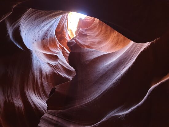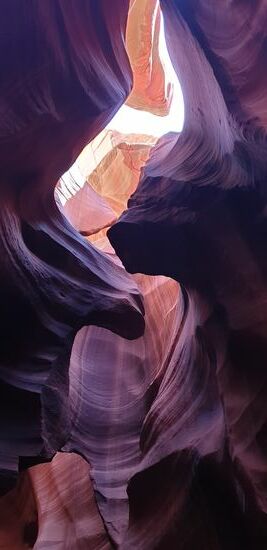 Auf dem Weg ins Motel wollen wir gleich die Antilope Canyon Tour für morgen buchen. Sie sagen, dass nur noch in ca. 10 Minuten eine Tour frei ist und wir uns sofort entscheiden müssen, da der nächste Termin erst nächsten Mittwoch ist. Der Preis hierfür beträgt 60 $ pro Person. Ich habe noch eine lange Hose an, da es morgens sehr kühl war und wir wollen uns eigentlich noch umziehen, da es sehr heiss ist. Sie lassen uns aber nur schnell den Rucksack, der auf der Tour nicht erlaubt ist, ins Auto bringen. Mit einer Flasche Wasser bewaffnet starten wir los. Wir sitzen auf der Ladefläche eines kleinen Trucks, der hinten 2 seitliche Bänke hat. Unser Guide heizt mit einem Affentempo erst über den Highway und dann durch den Sand. Am Antilope Canyon angekommen geht die Tour los. Der Guide zeigt uns die besten Fotospots und macht von uns Bilder. Der Canyon wurde durch Sturzfluten so geformt. Es ist wircklich beeindruckend.