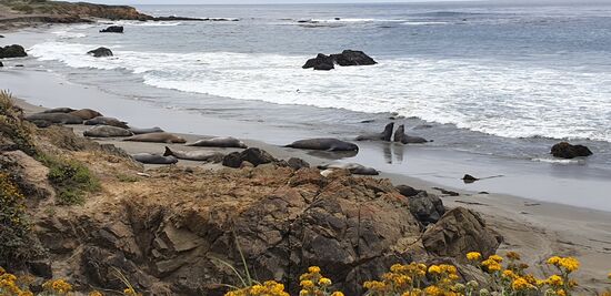 Wir fahren los und frühstücken in Pismo Beach. Avocado mit Ei und Toast und gönnen uns einen Pistazien Donut, den wir uns teilen. Danach sind wir in der "Morro Bay". Dann fahren wir auf den Highway No. 1. Dieser ist einfach wunderschön. Wir schauen uns die Seeelefanten an, diese sind riesig und kämpfen gegeneinander und baden in der Sonne. Das Highlight ist der Julia Pfeiffer Burns State Park, wo wir den Overlook Trail gehen und den Wasserfall anschaun. Es sieht hier einfach magisch aus.
