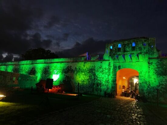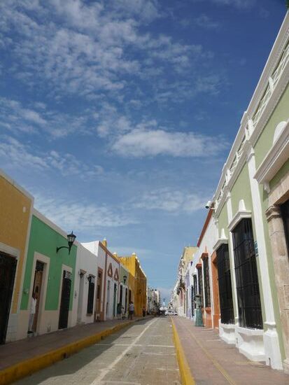 Erhaltene Teile der Stadtmauer sind – heute in allen Farben beleuchtet – fast die wichtigsten Sehenswürdigkeiten. Campeche ist eine kleine Kolonialstadt und der alte Stadtkern gehört seit 1999 zum Weltkulturerbe. Die Häuser sind klein und bunt.