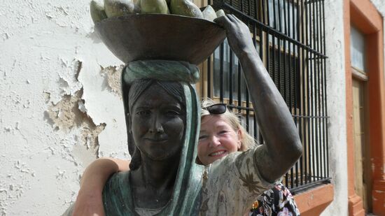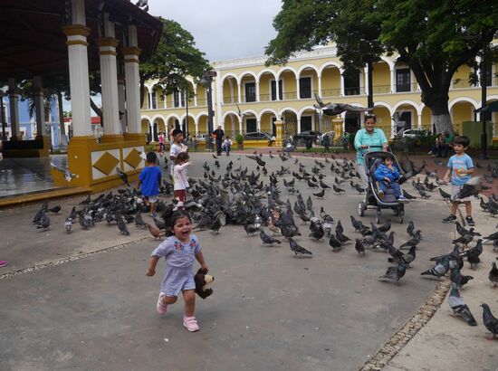 Immer wieder ein Anziehungspunk ist: der große Marktplatz mit der Kirche. Ganz ähnlich aufgebaut wie in den anderen Kolionalstädten, die wir gesehen haben: Valladolid und Merida ...