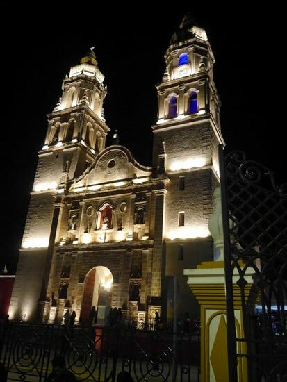 In Campeche scheint jeden Abend irgend eine Veranstaltung stattzufinden. Wenn man von dem Tanz am ersten Abend absieht, haben wir noch eine Band auf dem Marktplatz mitbekommen und eine „Kermes“, wo es neben Hüpfburgen eine Fressmeile mit mexikanischen Gerichten und eine Sängerin gab, die schmachtend „Besame mucho“ geschmettert hat.