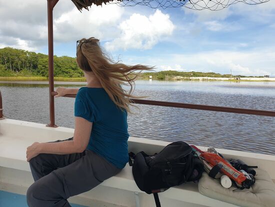 Während wir diesen Blog schreiben, haben wir freie Sicht auf die Lagune und beobachten große Trupps weißer Ibisse, die vorbei ziehen und das kleine schaukelnde Fischerboot, auf dem die Pelikane ihren Logenplatz gefunden haben.