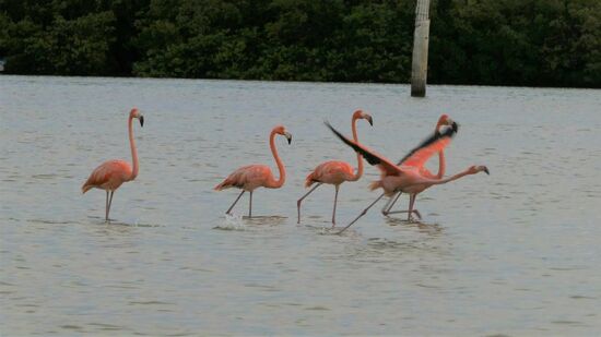 Die meisten Touristen, die auf diese Tour gehen, wollen die Prominenten des Ortes sehen: die karibischen Flamingos. Wir waren aber auch wegen der vielen anderen da. Wie freuen uns über die kleinen Kolibris genau so wie über deren großen Vettern.