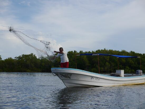 Nebenbei haben wir alles Mögliche über den Mangrovenwald erfahren, über die Quellen, die aus den Cenoten in die Lagune fliessen und im Wasser an einigen Stellen sprudelnd nach oben steigen.
