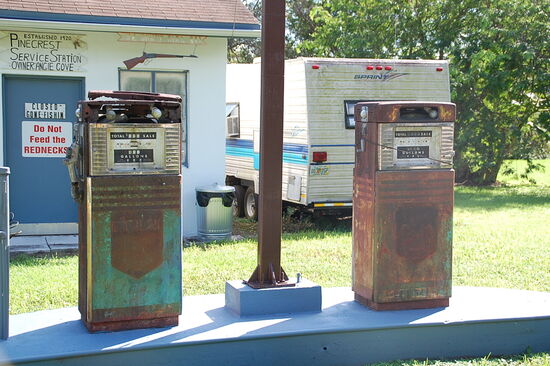 Auf dem befestigten Teil der Loop Road kommt man an an einer uralten Tankstelle vorbei. Es sieht so aus als würden hier tatsächlich noch Leute leben.