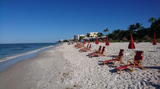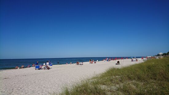 Wir sind um 7:30 Uhr schon zum Frühstücken. Heute war es natürlich dann auch etwas ruhiger so früh. Wie geplant, sind wir zum Lowdermilk Park Beach gefahren und haben uns dort ein schattiges Plätzchen gesucht
