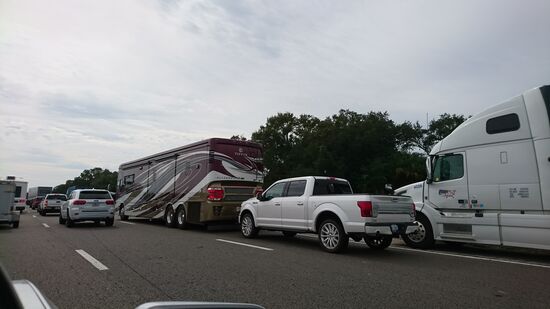 Auf dem Weg dorthin sind wir tatsächlich in einen Stau geraten, seitdem wir unterwegs sind (seit 1200 Meilen gleich ca 1900 km)