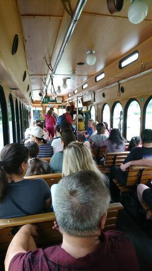Wir haben uns beim Veranstaltungsschalter im Hotel 2x 3Tageskarten für den I-Trolley gekauft. Der I-Trolley ist eigentlich ein Bus, der aber innen eher einem alten Bahnwaggon gleicht.