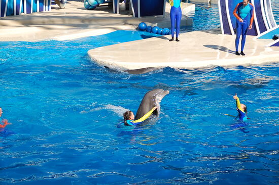 Bei den Shows haben wir uns nur die Killerwal Show und auch die Delfinshow angesehen. Bei der Delfinshow war schon richtig Stimmung, da hatte auch jeder Delfin seinen eigenen Trainer.