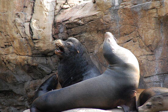 Bei den Seehunden sind wir dann auch noch vorbei. Dort kann man sich kleine Fische zum Füttern kaufen, was die Amis natürlich auch machen...