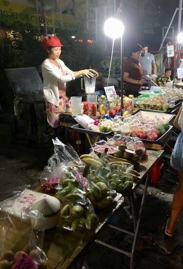 Wir holen noch leckeres frisches Obst und gehen satt und müde ins Hotel, auf dem Weg dahin fällt uns ein Massagestudio auf, wir laufen seit 5 Tagen hier lang und erst heute sehen wie es.....also beschließen wir uns morgen vor Abflug noch eine Massage zu gönnen . Ganzkörpermassage 1h für 390 Baht ( 11,70€) und ich Fußreflexzonenmassage für 250 Baht (7,50€). Taxi buchen wir ebenfalls für morgen Mittag....und checken schon mal ein im Flieger nach Krabi...endlich Strand und Meer