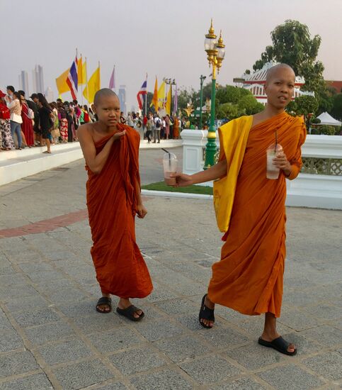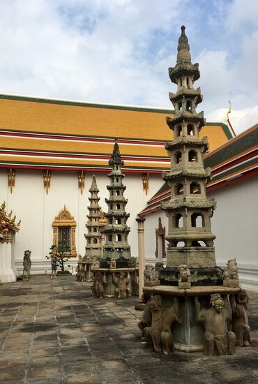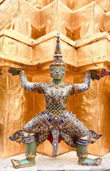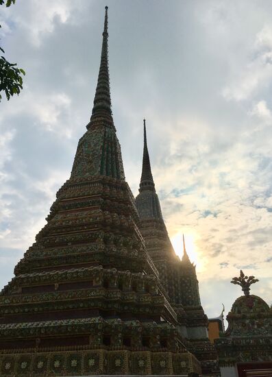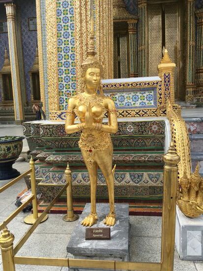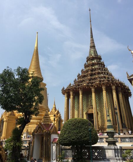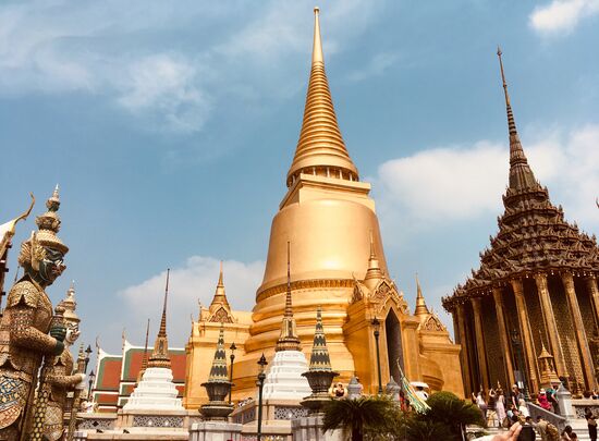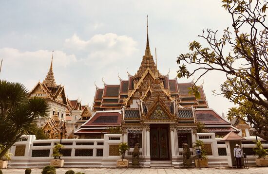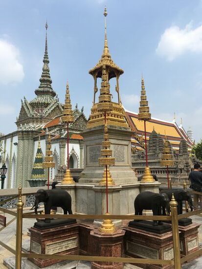 Heute mal per Wecker aufgestanden.... nach lecker Frühstück und Kaffee geht es Richtung Königspalast, Kultur ist heute angesagt. Für 15€ (500 Baht) pro Person Eintritt geht’s rein, nicht ohne vorher die Beine verdeckt zu haben! Eine lange Hose haben wir dabei. Ich habe mir was für 150 Baht (4,5€) kaufen müssen. Audioguides für 90min 200 Baht (6€) pro Person müssen ebenfalls sein. So viele Menschen wieder, hauptsächlich Asiaten.... wir machen viele Fotos und hören aufmerksam zu.... nach 90 Minuten sind wir dann doch, auch aufgrund der Mittagshitze, etwas geschafft und gönnen uns eine Pause am Fruchtstand mit lecker eisgekühlten Melonen und Kokosnusswasser.