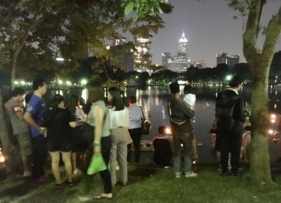 Wir fahren heute ins MBK zum Shoppen... naja so richtig gibts da nix für mich, aber wir erstehen Geschenke für unsere Kinder zu Weihnachten, wo wir genau wissen, dass sie sich darüber freuen werden.... schnell noch eine SIM Karte gekauft, nun sind wir immer erreichbar.... wir gehen wieder lecker Essen, ich könnte mich echt daran gewöhnen immer essen zu gehen für ganz wenig Geld, aber echt oberlecker ist.... Wir frösteln etwas, in allen Gebäuden und Taxen wird die Klima gen null gedreht, bis jetzt schlagen wir uns tapfer und sind fit. Wir laufen nun Richtung Lumphini Park, heute ist Loy Krathong, DAS Lichterfest in Thailand... wir stellen immer wieder fest, Bangkok ist keine Stadt zum spazieren gehen, die Luft ist wirklich ni schön, aber Augen zu und durch!