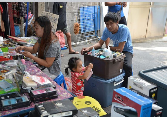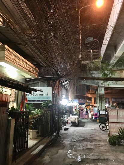 Wir wollen wieder etwas die Straßen entlang laufen, da wir etwas weg von den Hochhäusern und Touristen sind..... . Es ist alles irgendwie schmutzig, obwohl kein Müll herumliegt. Heute ist die Luft auch besonders stickig.... unterwegs essen wir mal hier, mal da was probiert und stellen fest, dass gefühlt alle Thailänder anscheinend an der Straße essen, allein oder in Familie. Das angebotene Essen ist auch wirklich lecker, zum kleinen Preis!