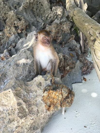 Los geht’s als erstes zum Monkeybeach... kleiner Strand mit einer Affenfamilie und vielen Touristen.... einige ärgern die Affen, die dann etwas böse werden.... mmhhh