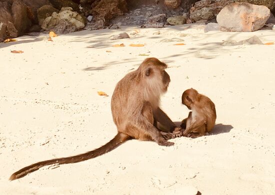Letzte Runde über die Insel, diesmal nach Lanta Noi. Diese Hälfte Koh Lantas ist touristisch nicht erschlossen, da keine Sandstrände vorhanden sind, aber hier leben viel mehr Einheimische als auf der anderen Seite und ich finds bald schöner....immer mal ein Affe der auf der Straße sitzt oder diese überquert.... schön! Kleiner Snack und wir fahren zurück zum Hotel um noch ein bisschen am Strand zu entspannen und baden zu gehen.
