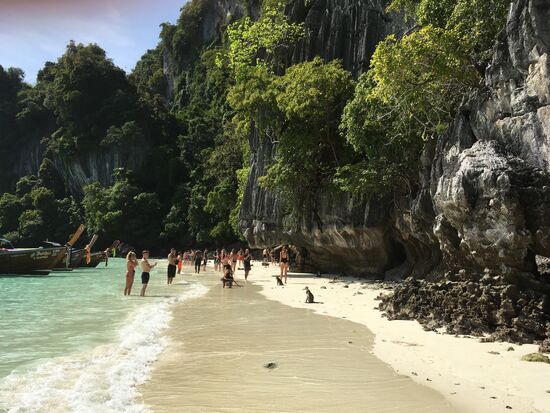 Zum Schluss in die berühmte Maya Bay, hier spielte der Film The Beach mit Leonardo di Caprio.... Die Maya Bay galt lange Zeit als Paradies. Leider war der Ort so überlaufen, dass die Unterwasserwelt fast vollständig zerstört wurde. Seit Juni 2018 hat die Regierung den Besuch für den Tourismus auf unbestimmte Zeit gesperrt