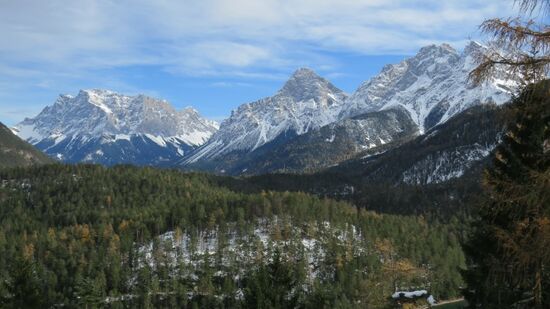 zumindest bis Füssen, wo wir vor dem Grenztunnel eine Polizeikontrolle passieren mussten, vorbei an Reutte (Tirol), vom mittlerweile vom Schnee geräumten Fernpass ein letzter Blick auf die Zugspitze,