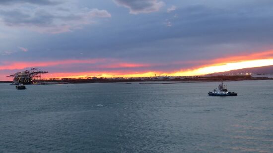 während wir eigentlich nur auf die Weiterfahrt warten. Um 21h ist es dann so weit, Leinen los, wir fahren weiter, gehen bald darauf zu Bett und freuen uns am nächsten Morgen über ruhige See und Sonnenschein. Unter solchen Umständen macht uns diese Anreise viel mehr Spass als die 3.000km auf uns bestens bekannten Autobahnen/Landstrassen zurückzulegen.