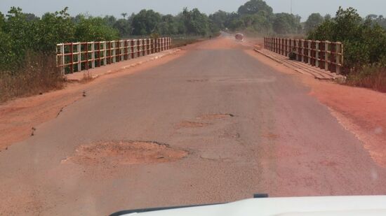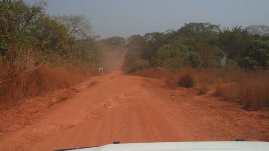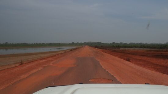 die sich offensichtlich hier recht wohl fühlen. Weiter Richtung Osten auf Schlaglochasphalt bis Gabu und dann auf roter ausgefahrener Erdpiste Richtung Grenze. Bei Piche,