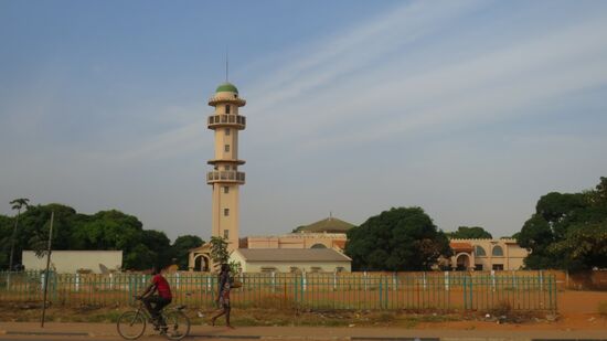 Pünktlich um 10h können wir unser Visa für die Elfenbein Küste (FCA 19.000 für 3 Monate, Single Entry) in Empfang nehmen und ziehen weiter auf bekannt schlechten Strassen Richtung Osten. Eine Moschee am Strassenrand,