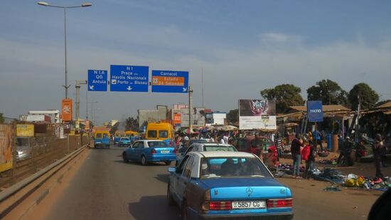 und zwei grosse, neue Brücken, vor denen jeweils CFA 500 Maut kassiert wird und schon ist man in der Hauptstadt Bissau. Auffallend hier die vielen blauen Taxis mit dem Stern vorne drauf,