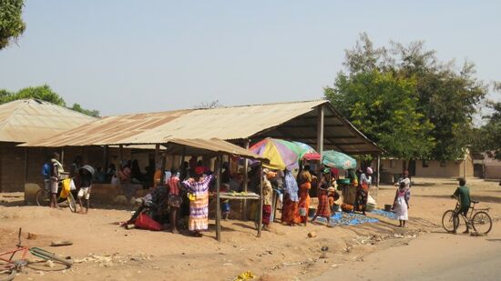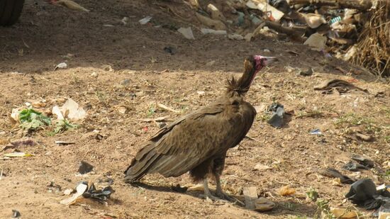 Allwetterpiste, Erdpiste und den Badenixen zurück bis Bambadinca. Hier gehen wir auf den Markt zum Einkaufen und sehen dann am Ortsende auf der Müllhalde gut 20 dieser Geier?