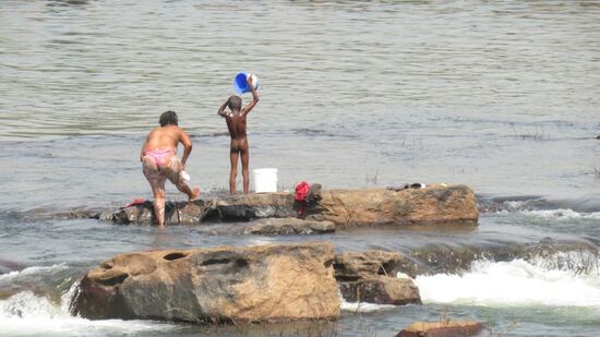 nach etwa 100km wird bei Bambadinca noch einmal FCA 500 Brückenzoll kassiert, bevor wir dann bei Mampata am Wasserfall des Saltinho das Leben am Fluss live erleben dürfen.