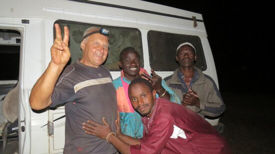 so etwa 50 km vor der Grenze zwischen Guinea-Bissau und Guinea gibt SL3 plötzlich seltsame knirschende Geräusche ‚aus dem Getriebebereich‘ von sich, wir vermuten gleich mal das Schlimmste, halten an und fragen im nächsten Haus an der Strasse ob es hier einen Mechaniker gibt und treffen schon wieder einen ‚Schutzengel‘, denn: Ja, Bruder (=Freund?) ist einer, wird gleich angerufen, kommt 10 Min später mit weiteren 3 Assistenten und meint ‚das ist nur Differential‘, also mitten auf der Wiese: Steckachsen raus, Kardanwelle abgehängt, Differential zerlegt – und schon haben wir den ,Übeltäter‘, meine tolle Differentialsperre von ARB hat sich in seine Einzelteile zerlegt und dabei eines der Lager im Diff gleich mit zerstört, das Öl eine metallhaltige graue Brühe. Das Diff wird mitgenommen, damit es in der Werkstatt neue Lager bekommen kann und wir werden ab jetzt eben ohne die Diffsperre rumfahren müssen. Ob da jemals eine neue reinkommen wird? Schau mer mal.