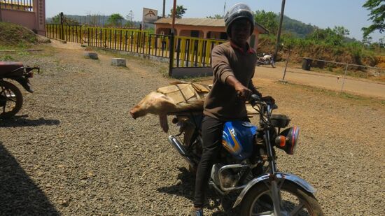 den um diese Jahreszeit feuchtesten Gebieten, in denen all die Wildtiere her leben solle, gesehen haben wir kein einziges, glauben wollen wir es trotzdem. Wir verlassen den Park, verabschieden uns von Ranger Sami, lernen am Check Point 1 eine für uns neu Methode des Schweinetransportes (Eber, 120kg+) kennen