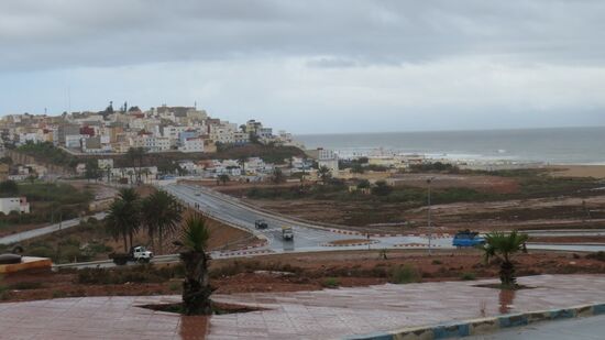 Nach drei Tagen auf dem CP hier in Tiznit, wird es für uns Zeit weiterzuziehen, die Sitze sind neu bezogen, das Reserverad hat seine Hülle, der Himmel weint. Bereist auf dem Weg zur Küste bei Sidi Ifni