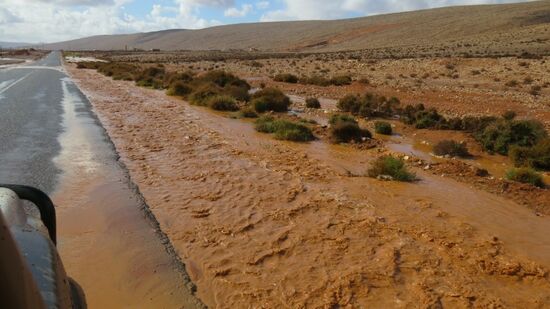 die Wüste ist überschwemmt, die Straßengräben reißende Bäche.