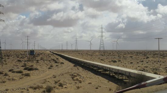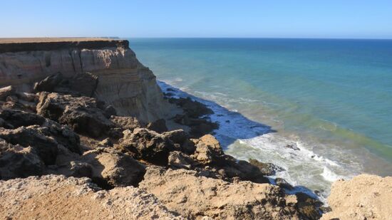das ‚Längste Förderband der Welt‘ bringt immer noch aus über 120km Entfernung Phosphat zum Verladeplatz am Meer.