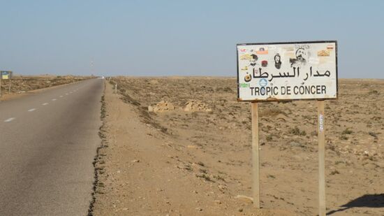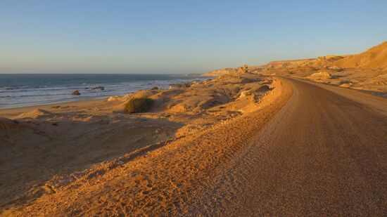 den Wendekreis des Krebses, sind somit wieder mal in den Tropen angekommen. Davon spüren wir aber überhaupt nichts, der kühle auflandige Wind nimmt eher noch zu, weisser Sand weht über die Strasse, erinnert schon fast an leichtes Schneetreiben,