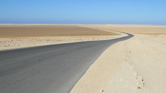 in der eigentlich nur Baustellen für neue Hotelprojekte und noch mehr Bauruinen für unvollendete Hotelprojekte eher störend wirken. Entlang der Ostküste dieser schmalen Landzunge an deren Ende Dakhla liegt Richtung Süden, am Anfang der Stadt dann rüber zur Westküste vorbei am Leuchtturm,