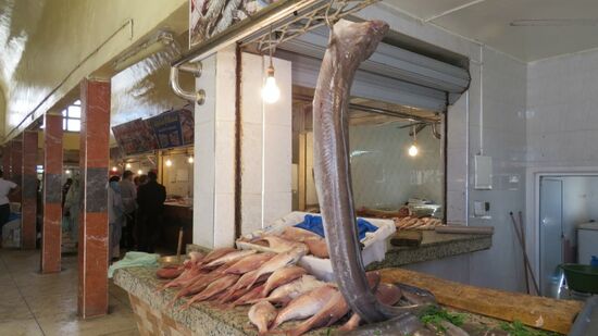 dann quer durch die Stadt zum City Market, wo wir uns heute mal mit frischem Fisch eindecken.