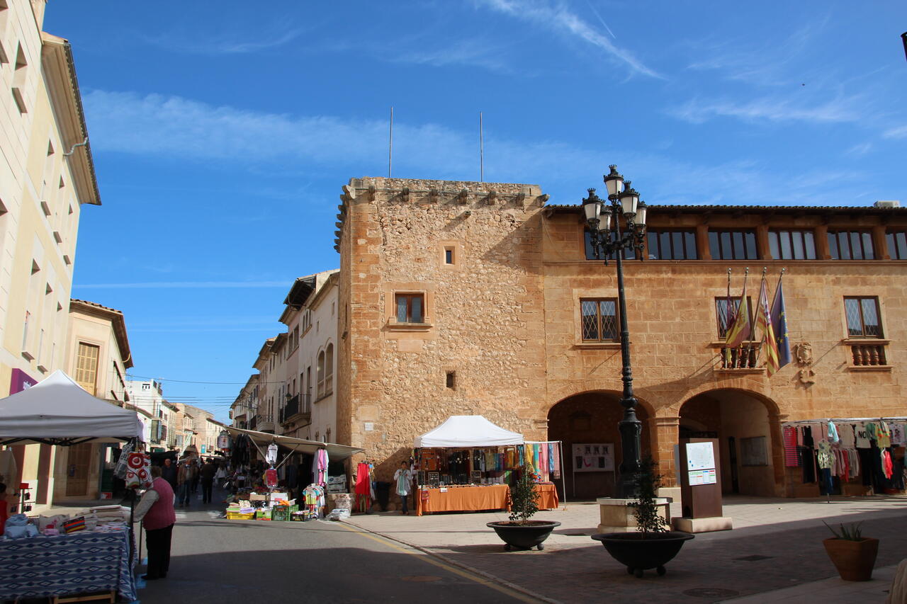 Heute fahren wir mit unserem Mietwagen gen Süden. Unser erster Halt ist in Llucmajor: Dort besuchen wir den Wochenmarkt. Hier gibt es noch - wie bei uns früher auch - funktionierende Tankstellen mitten im Ort. Und das rege Markttreiben verleitet uns natürlich zum Anprobieren und Kaufen.