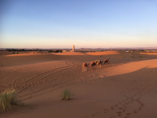 Wir schälten uns heraus und zogen uns schnell warm an. Noch glaubten wir ja, wir würden einen weiteren Ausritt mit dem Kamel in den Sonnenaufgang hinein unternehmen. Doch da hatten wir wohl etwas falsch verstanden. Heute Früh war lediglich ein individueller Spaziergang möglich.