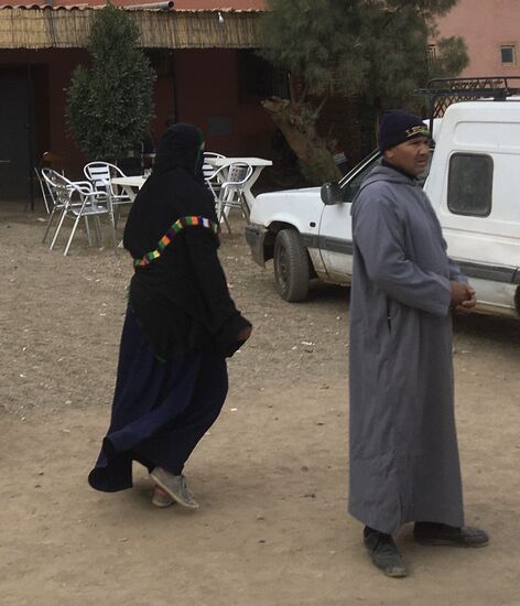 Dann fuhr unser Fahrer eine weitere Unterkunft an. Dort stehen zwei Belgierinnen ein, die nun nach Marrakesch fahren wollten. Nun war unser Bus bis auf den letzten Platz besetzt.